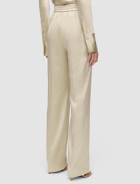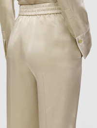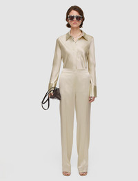 The Silk Satin Tova Trousers are a mid-rise, straight leg trouser, crafted from a smooth, lustrous silk. These trousers are rich in colour and feature a flat front which offers a clean, flattering look. - 100% silk - Designed for a regular fit - Straight leg - Mid-rise - Full-length - Side pockets - Pull-on style - Elasticated waistband at the back - Product code: jf0086901274 SIZE ADVICE - Regular outer leg length 113cm - 116cm - Shorter outer leg length 104cm - 107cm - Model wears French size 36 Discover the Trouser Guide and find your perfect fit CARE & MATERIALS Discover the Care Guide, a guide to help you to care for your garments. Discover the Care Guide, a guide to help you to care for your garments. - 100% Silk - Do not wash - Do not bleach - Do not tumble dry - Iron low temperature setting - Dry clean very light with restriction