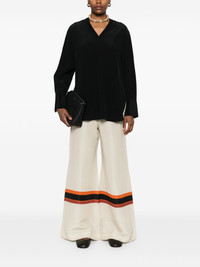 Miller blouse Highlights - Black - Box-pleat detail - V-neck - Long sleeves Imported Composition Silk 100%, Viscose 85%, Polyamide 13%, Elastane 2% SIZE & FIT Model measurements Height 5 ft 11 in(1.8 m) Bust/Chest 31.49 in(80 cm) Hips 36.61 in(93 cm) Waist 24.4 in(62 cm) FittingInformation Designed to be unstructured, offering a loose fit throughout Made from a lightweight non-stretch fabric