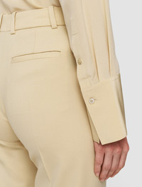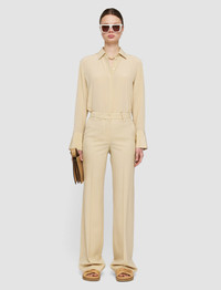 The Tailoring Wool Stretch Morissey Trousers are a mid-rise, regular fit trouser, crafted from JOSEPH's signature tailoring wool fabric. These trousers are straight cut, with a gradual flare, finished with central pressed creases to elongate the silhouette. - Designed for a regular fit - Mid-rise - Gradual flare - Side pockets - Product code: jp0015821266 SIZE ADVICE - Regular outer leg length 113 - 116cm - Shorter outer leg length 102 - 105cm - Model wears French size 36 Discover the Trouser Guide and find your perfect fit CARE & MATERIALS Discover the Care Guide, a guide to help you to care for your garments. - 98% Virgin wool 2% Elastane - Do not wash - Do not bleach - Do not tumble dry - Iron low temperature setting - Dry clean normal