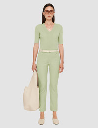 The Gabardine Stretch New Eliston Trousers are a slim fit trouser, crafted from JOSEPH's signature gabardine stretch fabric which has remarkable stretch recovery. Offering shape and comfort, these essential trousers have a smooth, heavy weight cotton hand feel. - Designed for a slim fit - Mid-rise - Ankle length - Jet side pockets - Product code: jp0017091336 - Matcha Green SIZE ADVICE - Model wears size FR 36/UK 8/EU 34/US 4/DE 34/IT 40/JP 7 Discover the Trouser Guide and find your perfect fit CARE & MATERIALS - 53% Viscose 42% Cotton 5% Elastane - Do not wash - Do not bleach - Do not tumble dry - Iron low temperature setting - Dry clean