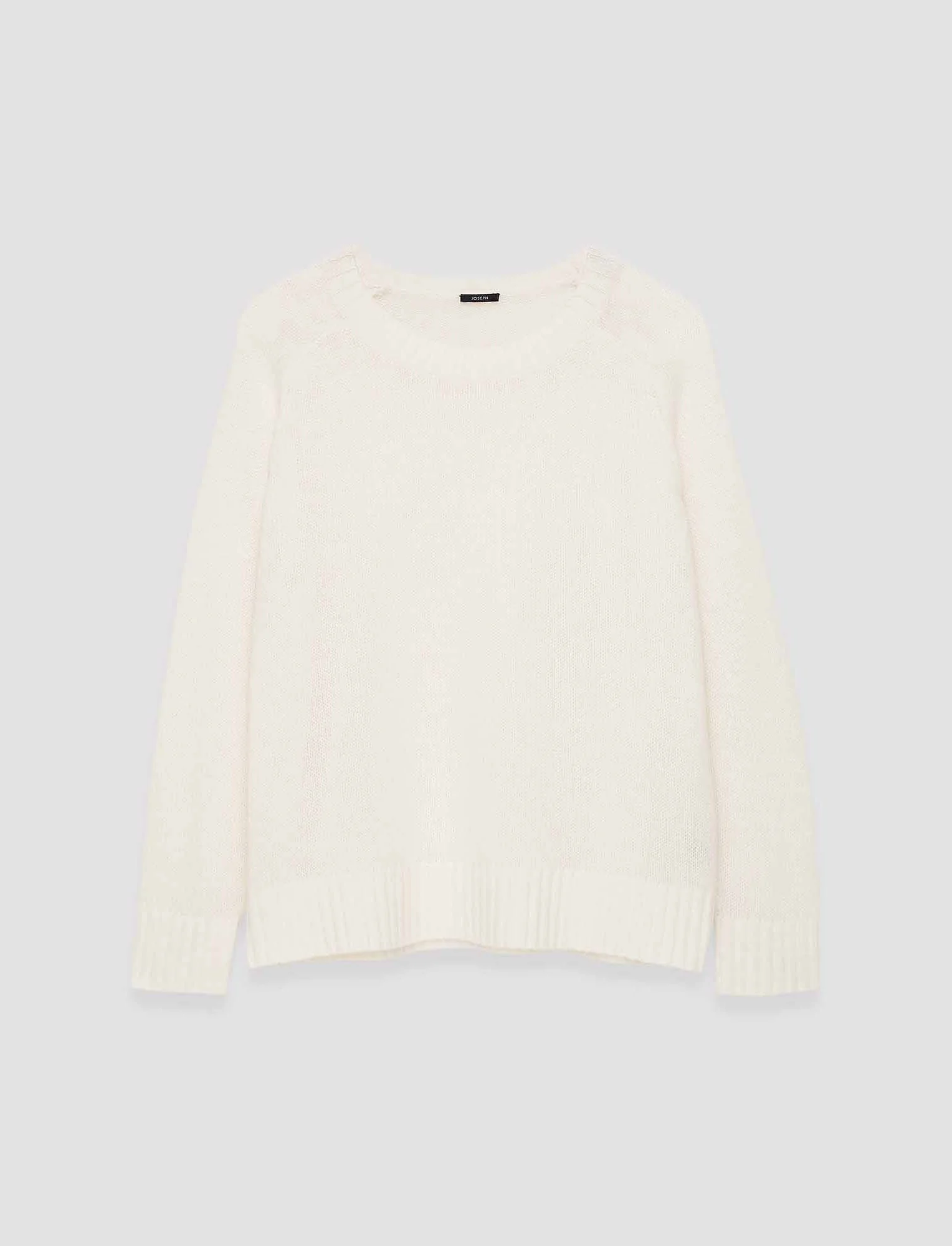 The Open Cashmere Round Neck Jumper is a regular fit jumper, crafted from Mongolian cashmere. This style is luxuriously soft, featuring a wide ribbed neckline, hem and cuffs. It's finished in a looser knit, ensuirng lightness and comfort. - 100% cashmere - Designed for a relaxed fit - Dropped shoulders - Product code: jf0089150045 - Ivory SIZE ADVICE - Model wears size S CARE & MATERIALS Discover the Care Guide, a guide to help you to care for your garments. - 100% Cashmere - Machine wash, wool/silk program wash, very gentle spin - Do not bleach - Do not tumble dry - Iron low temperature setting - Dry clean - Use a wool shampoo - Put in a laundry bag - Wash inside out with similar colours - Dry flat - Iron inside out
