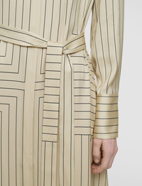 The Orlana Geometric Print Silk Dress is a relaxed fit, collarless dress, crafted from a blend of silk and viscose for a lustrous and fluid look and feel. It’s a button-down style with a hidden placket and classic shirt cuffs offer a clean, elegant look. Model wears size FR 38/UK 10/EU 36/US 6/DE 36/IT 42/JP 9 Details - Designed for a relaxed fit - Collarless - Hidden placket - Side pockets - A-symmetric hem - Tie belt - Product code: jf0093622271 Care & Materials - 47% Silk 44% Viscose 9% Spandex - Do not wash - Do not bleach - Do not tumble dry - Iron low temperature setting - Dry clean