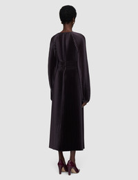 The Ortiz Pleated Woven Dress is a long-sleeved, pleated midi style crafted from a smooth, silk-like fabric. Defined by decorative smocking at the waist, which is expertly stitched by hand. Voluminous sleeves add dimension and movement, creating a flattering, silhouette that drapes with ease. Model wears size FR 38/UK 10/EU 36/US 6/DE 36/IT 42/JP 9 Details - Fit to flare - Mid-length - Voluminous sleeves - Hand stitched smocked waist - Elasticated waist - Invisible back zip - Product code: jf0095971204 Care & Materials - 100% Polyester - Do not wash - Do not bleach - Do not tumble dry - Iron low temperature setting - Dry clean - Put in a laundry bag