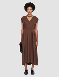 The Comfort Cady Turot Dress is a mid-length, cap sleeve dress, crafted from a viscose cady material which is compact and fluid. This style is fitted at the waist with pleated detailing. - We are recommending a size down - Fitted, pleated waist - Mid-length - V neck - Cap sleeves - Side pockets - Invisible back zip - Product code: jp0016611210 SIZE ADVICE - Length 125cm - 131cm - Model wears size FR 36/UK 8/EU 34/US 4/DE 34/IT 40/JP 7 CARE & MATERIALS - 76% Viscose 20% Acetate 4% Elastane - Do not wash - Do not bleach - Do not tumble dry - Iron low temperature setting - Dry clean very light with restriction