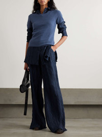 EDITORS'NOTES Joseph’s collections consist of clean and timeless pieces that pose endless styling opportunities. A touch more elevated than classic styles, this T-shirt is finely spun from sumptuous cashmere and edged with ribbed trims. Note the subtle pointelle-knit detailing at the front which beautifully highlights the waist. SIZE & FIT Model measurements: - Fits true to size, take your normal size - Designed for a close fit - Fine knit - Model is 175cm/ 5'9" and is wearing a size XSmall - Bust: 81cm/ 32" - Waist: 64cm/ 25" - Hip: 89cm/ 35" DETAILS & CARE - Storm-blue cashmere - Slips on - 100% cashmere - Hand wash - Designer wash: Harbour