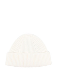 ribbed beanie hat Highlights - Light beige - Turn-up brim - Internal logo patch Imported Composition RWS Wool 80%, Cashmere 10%, Silk 10% SIZE & FIT Measurement BRIM 3.14 in(8 cm) CIRCUMFERENCE 22.04 in(56 cm)