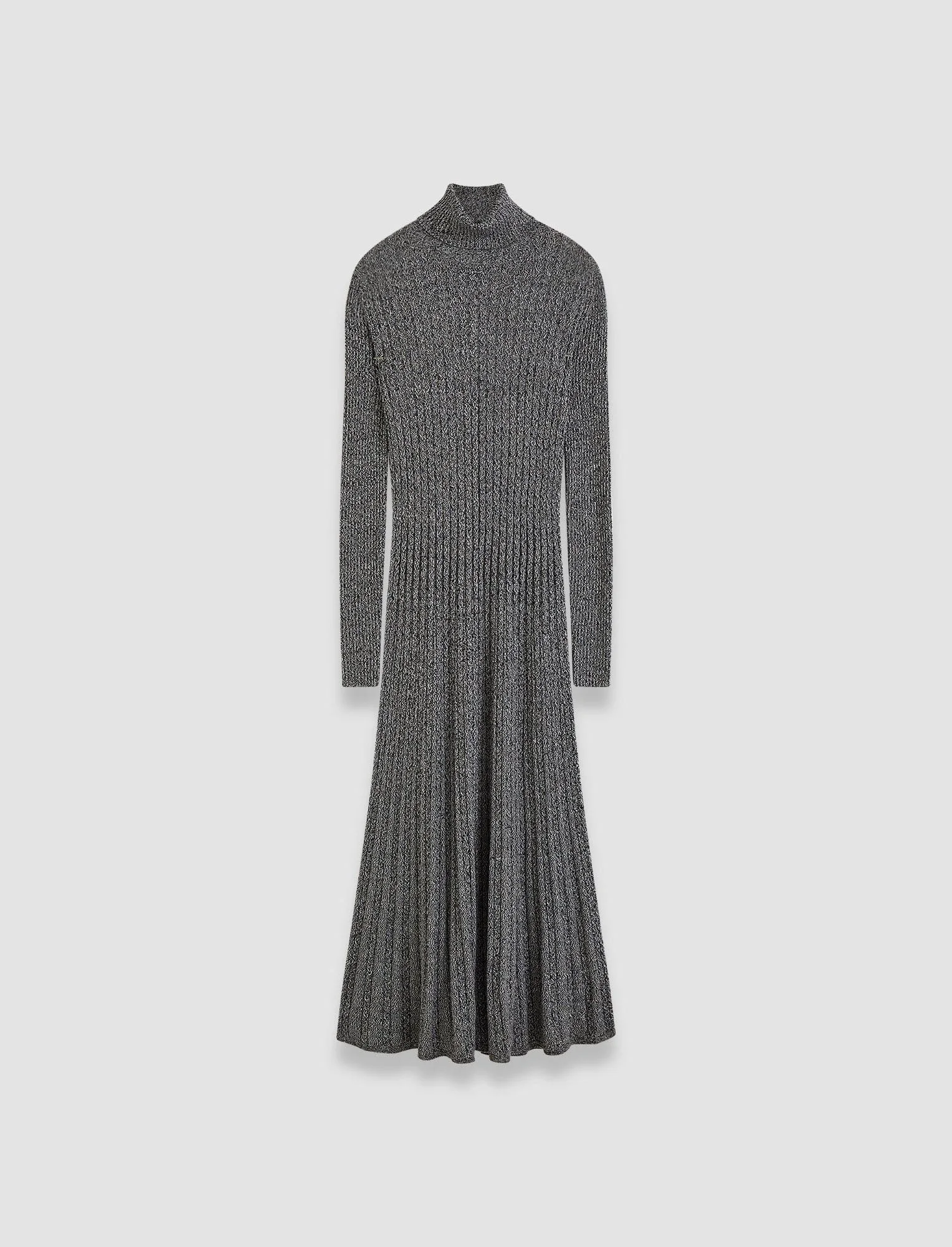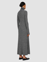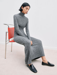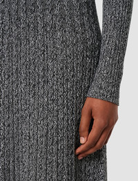 The Ribbed Cable Knit Dress is a high neck, fit to flare dress, crafted from a blend of merino wool and silk. The body of this dress is knitted together in cable knit, with a ribbed roll neck and sleeves. Comprised of black and ivory yarns creating a mouline effect. - Fit to flare - High roll neck - Product code: jf0089310265 - Ivory/Black SIZE ADVICE - Length 115cm -120cm - Model wears size M CARE & MATERIALS Discover the Care Guide, a guide to help you to care for your garments. - 75% Merino wool 25% Silk - Machine wash, wool/silk program wash, very gentle spin - Do not bleach - Do not tumble dry - Iron low temperature setting - Dry clean - Use a wool shampoo - Put in a laundry bag - Wash inside out with similar colours - Dry flat - Iron inside out