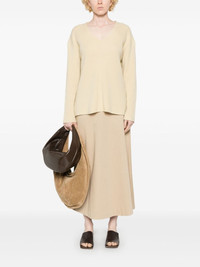 ribbed-knit sweater Highlights - Light beige - Cashmere - Ribbed knit - Plunging v-neck - Drop shoulder - Long sleeves - Straight hem Imported Composition Cashmere 100% SIZE & FIT Model measurements Height 5 ft 9 in(1.74 m) Bust/Chest 34.64 in(88 cm) Hips 36.61 in(93 cm) Waist 26.37 in(67 cm) FittingInformation Designed to be unstructured, offering a loose fit throughout Made with a midweight knit, this piece offers some stretch