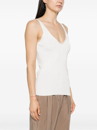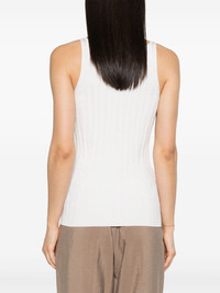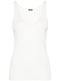 Satiny tank top Highlights - Ivory white - Ribbed knit - Chunky ribbed-knit detailing to the rear - U-neck - Sleeveless - Straight hem - Unlined Imported Composition Viscose 92%, Polyester 6%, Polyamide 2% SIZE & FIT Model measurements Height 5 ft 11 in(1.8 m) Bust/Chest 33.07 in(84 cm) Hips 37.4 in(95 cm) Waist 25.19 in(64 cm) FittingInformation Designed for a close fit throughout Made with a midweight knit, this piece offers some stretch This piece fits true to size – take your usual size