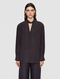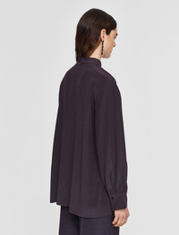 The Rivoli Silk Crepe de Chine Blouse is a relaxed fit blouse, crafted from a lightweight silk crepe which has a smooth, crisp hand feel. This style features a draped, twisted collar, point jour detailing down the front and fluid slit sleeves. - 100% silk - Designed for a relaxed fit - Twisted collar - Slit detail down each sleeve - Invisible back zip - Product code: jf0088770572 - Aurora Purple SIZE ADVICE - Model wears size FR 36/UK 8/EU 34/US 4/DE 34/IT 40/JP 7 CARE & MATERIALS Discover the Care Guide, a guide to help you to care for your garments. - 100% Silk - Do not wash - Do not bleach - Do not tumble dry - Iron low temperature setting - Dry clean