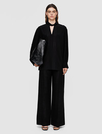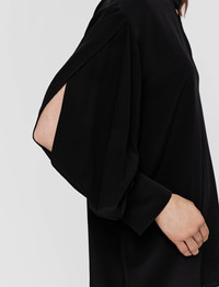 The Rivoli Silk Crepe de Chine Blouse is a relaxed fit blouse, crafted from a lightweight silk crepe which has a smooth, crisp hand feel. This style features a draped, twisted collar, point jour detailing down the front and fluid slit sleeves. - We are recommending a size down - 100% silk - Designed for a relaxed fit - Twisted collar - Slit detail down each sleeve - Invisible back zip - Product code: jf0088770010 - Black SIZE ADVICE - We are recommending a size down - Model wears size FR 36/UK 8/EU 34/US 4/DE 34/IT 40/JP 7 CARE & MATERIALS Discover the Care Guide, a guide to help you to care for your garments. - 100% Silk - Do not wash - Do not bleach - Do not tumble dry - Iron low temperature setting - Dry clean