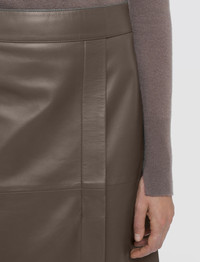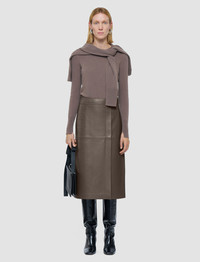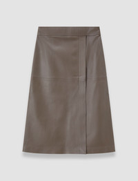 The Leather Nappa Sevres Skirt is an A-line, wrap effect skirt, crafted from supple nappa leather for exceptional comfort and softness. This skirt features an overlapping front which creates a slit. It's finished with an invisible side zip for a clean finish. Model wears size FR 36/UK 8/EU 34/US 4/DE 34/IT 40/JP 7 Details - A-line - Mid-rise - Mid-length - Overlapping front slit - Invisible side zip - Product code: jf0094492202 Care & Materials - 100% Lambskin - Do not wash - Do not bleach - Do not iron - Do not tumble dry - Do not dry clean - Cleaning by a leather specialist only