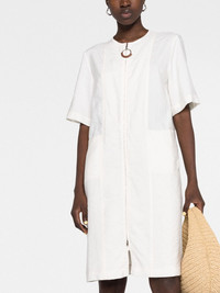 short-sleeve zip-fastening dress JOSEPH was created in 1893 with the intention to provide timeless yet contemporary essential garments. This is reflected on this short-sleeve dress through its minimalist monochromatic hue and functional front zip fastening. Highlights - Ivory white - Silk - Round neck - Short sleeves - Front zip fastening Imported Composition Lining: Polyester 100% Outer: Silk 82%, Polyamide 18% SIZE & FIT Model measurements Height 5 ft 11 in(1.8 m) Bust/Chest 32.67 in(83 cm) Hips 36.22 in(92 cm) Waist 24.4 in(62 cm) FittingInformation Designed for a relaxed fit, this piece allows for comfort and movement when worn Made from a midweight non-stretch fabric This piece fits true to size – take your usual size