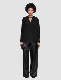 The Silk Crepe de Chine Blondel Blouse is a relaxed fit blouse, crafted from a lightweight silk crepe which has a smooth, crisp hand feel. This piece features an elegant V neckline, gathered detailing at the shoulders and fluid slit sleeves. - 100% silk - Designed for a relaxed fit - V neck - Slit detail down each sleeve - Product code: jf0087290010 SIZE ADVICE - Model wears size FR 36/UK 8/EU 34/US 4/DE 34/IT 40/JP 7 CARE & MATERIALS Discover the Care Guide, a guide to help you to care for your garments. - 100% Silk - Machine wash, wool/ silk program wash, very gentle spin - Do not bleach - Do not tumble dry - Iron low temperature setting - Dry clean mild