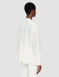 The Silk Crepe de Chine Blondel Blouse is a relaxed fit blouse, crafted from a lightweight silk crepe which has a smooth, crisp hand feel. This piece features an elegant V neckline, gathered detailing at the shoulders and fluid slit sleeves. - 100% silk - Designed for a relaxed fit - V neck - Slit detail down each sleeve - Product code: jf0087290045 SIZE ADVICE - Model wears size FR 36/UK 8/EU 34/US 4/DE 34/IT 40/JP 7 CARE & MATERIALS Discover the Care Guide, a guide to help you to care for your garments. - 100% Silk - Machine wash, wool/ silk program wash, very gentle spin - Do not bleach - Do not tumble dry - Iron low temperature setting - Dry clean mild