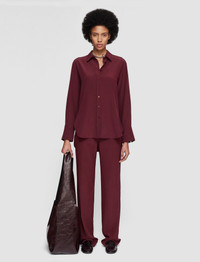The Silk Crepe de Chine Joe Blouse is a relaxed fit blouse, crafted from a lightweight silk crepe which has a smooth, crisp hand feel. This classic, button-up style is finished with shirt cuffs and a curved, step hemline. - 100% silk - Designed for a relaxed fit - Button-up style - Curved step hemline - Wide shirt cuffs - Product code: jf0087400640 SIZE ADVICE - Model wears size FR 36/UK 8/EU 34/US 4/DE 34/IT 40/JP 7 CARE & MATERIALS Discover the Care Guide, a guide to help you to care for your garments. - 100% Silk - Machine wash, wool/ silk program wash, very gentle spin - Do not bleach - Do not tumble dry - Iron low temperature setting - Dry clean mild