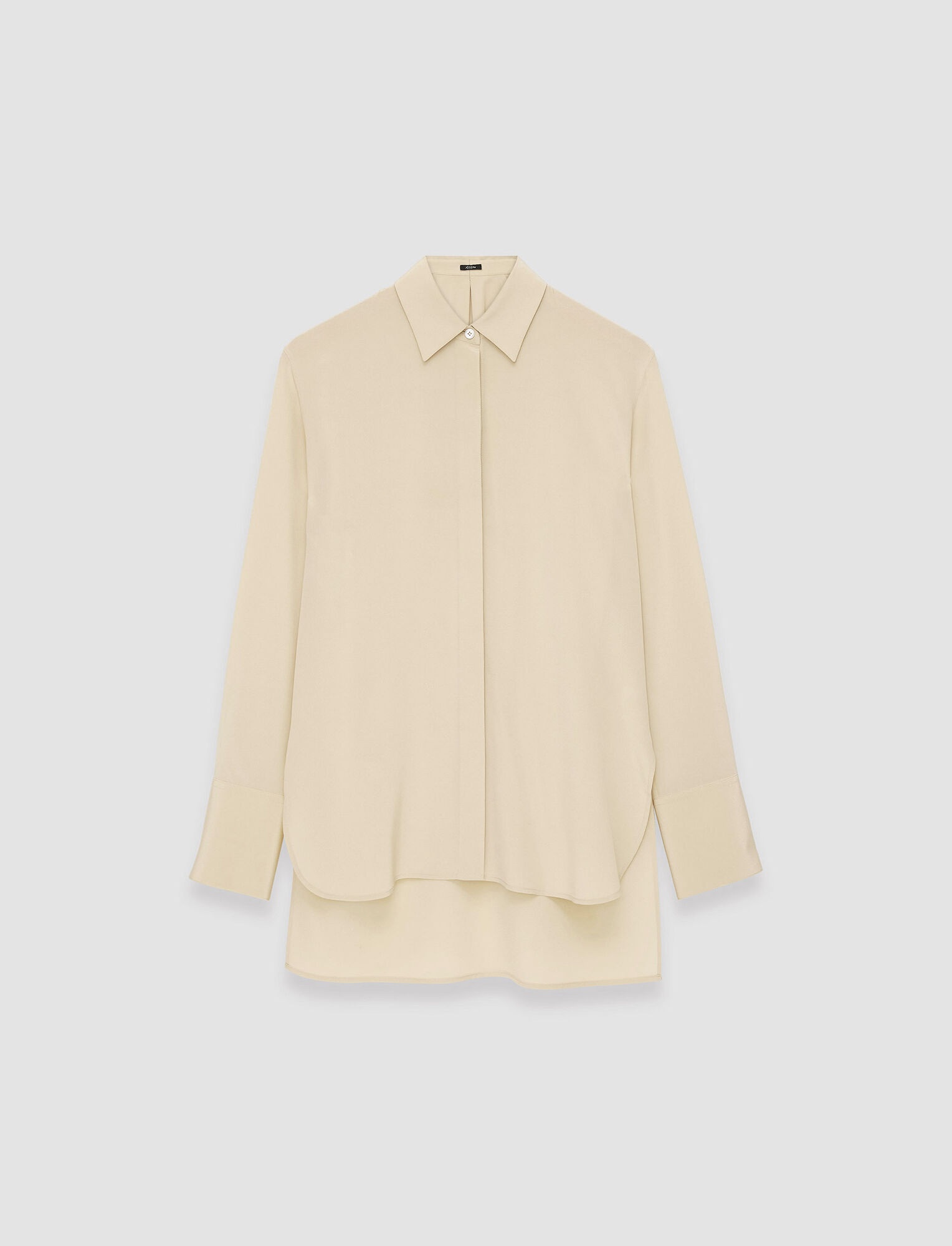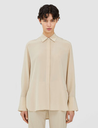 The Silk Crepe de Soie Bold Blouse is a relaxed fit blouse, crafted from a lightweight silk crepe. This fluid blouse has a soft sheen and a luxurious hand feel. - 100% silk - Designed for a relaxed fit - Button-up style with hidden placket - Stepped hemline - Side slits - Wide cuffs - Product code: jf0081781266 SIZE ADVICE - Model wears French size 36 CARE & MATERIALS Discover the Care Guide, a guide to help you to care for your garments. - 100% Silk - Machine wash, wool/silk program wash, very gentle spin - Do not bleach - Do not tumble dry - Iron low temperature setting - Dry clean mild - Use a special wool/silk detergent - Wash inside out with similar colours - Put in a laundry bag - Iron inside out - Hang to dry
