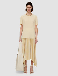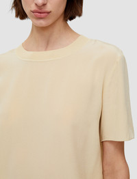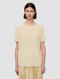 The Silk Crepe de Soie Rubin Blouse is a regular fit, straight cut top, crafted from a lightweight silk crepe. This essential style is an elevated take on the everyday t-shirt; minimal and crisp finished with a tonal ribbed neckline. - 100% silk - Regular fit - Straight cut - Tonal ribbed neckline - Product code: jf0084311266 SIZE ADVICE - Model wears French size 36 CARE & MATERIALS - 100% Silk - Machine wash, wool/silk program wash, very gentle spin - Do not bleach - Do not tumble dry - Iron low temperature setting - Dry clean mild - Use a special wool/silk detergent - Wash inside out with similar colours - Put in a laundry bag - Iron inside out - Hang to dry