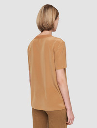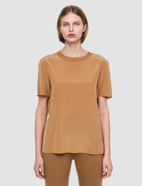 The Silk Crepe de Soie Rubin Blouse is a regular fit, straight cut top, crafted from a light silk crepe, which has a silky, grainy texture. This essential style is an elevated take on the everyday t-shirt; minimal and crisp finished with a tonal ribbed neckline. - 100% silk - Regular fit - Straight cut - Tonal ribbed neckline - Model wears French size 36, S - Product code: jf0068221265 SIZE ADVICE - 100% silk - Regular fit - Straight cut - Tonal ribbed neckline - Model wears French size 36, S CARE & MATERIALS Discover the Care Guide, a guide to help you to care for your garments. - 100% Silk - Machine wash, wool/silk program wash, very gentle spin - Do not bleach - Do not tumble dry - Iron low temperature setting - Dry clean mild - Use a special wool/silk detergent - Wash inside out with similar colours - Put in a laundry bag - Iron inside out - Hang to dry