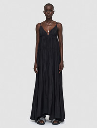 The Silk Habotai Darnley Dress is a floaty, maxi dress, crafted from habotai silk which is renowned for its lightness, sheen and silky feel. Rich in colour, this beautiful style features a double layer of material to avoid transparency, an invisible side zip and long ties which offer bust support, and can be style in multiple ways. Also available in shorter length - Maxi length - Deep V neck - Ties offer bust support - Petite frames consider a size smaller - Regular length 117 - 120cm - Shorter length 109 - 111cm - Model wears French size 38, M - Product code: jf0065050010 SIZE ADVICE - Maxi length - Deep V neck - Ties offer bust support - Petite frames consider a size smaller - Regular length 117 - 120cm - Shorter length 109 - 111cm - Model wears French size 38, M CARE & MATERIALS Discover the Care Guide, a guide to help you to care for your garments. - 100% Silk - Do not wash - Do not bleach - Do not tumble dry - Iron low temperature setting - Dry clean very light with restriction