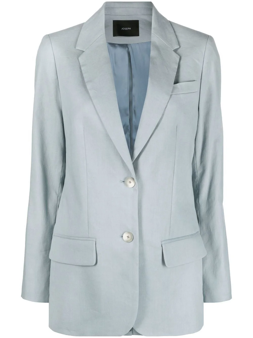 single-breasted button blazer Highlights - Blue-grey - Cotton-linen blend - Classic lapels - Front button fastening - Chest welt pocket - Two front flap pockets Imported Composition Outer: Linen/Flax 66%, Cotton 32%, Spandex/Elastane 2% Lining: Viscose 100% SIZE & FIT Model measurements Height 5 ft 10 in(1.77 m) Bust/Chest 31.49 in(80 cm) Hips 33.85 in(86 cm) Waist 22.44 in(57 cm) Measurement SLEEVE LENGTH 24.4 in(62 cm) LENGTH 28.74 in(73 cm) FittingInformation This piece fits true to size. We recommend you get your regular size Cut for a slim fit Made with a mid-weight non-stretch fabric