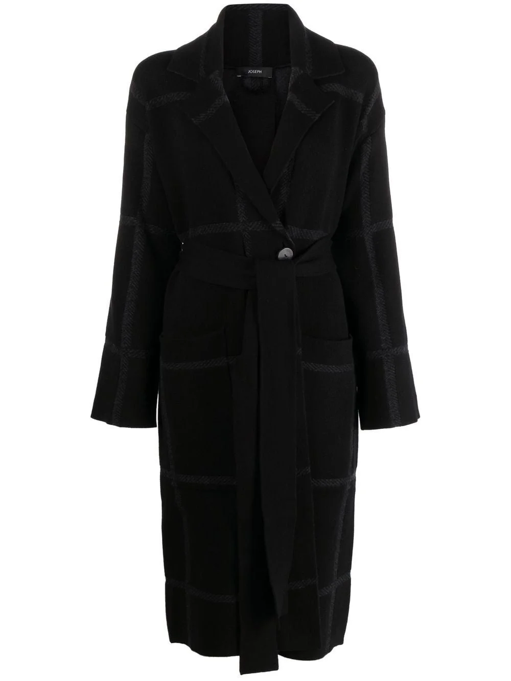 single-breasted coat JOSEPH showcases a sleek aesthetic with each collection. The label presents pieces that are minimal in design, like this button-front coat that's anchored by a classic single-breasted silhouette and monochrome colourway. Imported Composition Merino 97%, Polyamide 3% SIZE & FIT Model measurements Height 5 ft 10 in(1.78 m) Bust/Chest 29.92 in(76 cm) Hips 34.64 in(88 cm) Waist 23.62 in(60 cm) FittingInformation This piece fits true to size. We recommend you get your regular size Cut for a loose fit. Comes with an adjustable belt for a flexible fit at the waist Made with a mid-weight fabric
