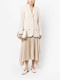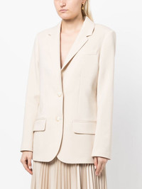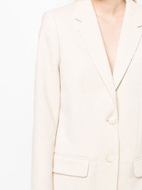 single-breasted tailored blazer off-white virgin wool blend classic lapels front button fastening two side flap pockets long sleeves Imported Composition Body: Virgin Wool 99%, Elastane 1% Lining: Acetate 65%, Polyester 35% SIZE & FIT Model measurements Height 5 ft 9 in(1.76 m) Bust/Chest 31.1 in(79 cm) Hips 35.03 in(89 cm) Waist 24.4 in(62 cm) FittingInformation This piece fits true to size. We recommend you get your regular size Cut for a loose fit Made with a mid-weight stretch fabric Washing instructions Dry Clean Only