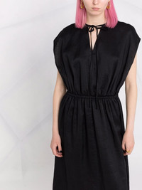 sleeveless gathered-detail dress JOSEPH aims to create opulent essentials that transcend seasons. This sleeveless dress from the SS22 collection features a tonal colourway and gathered detailing which reiterates this modern yet timeless feel. Highlights - Black - Cotton - Tonal design - Front tie fastening - Sleeveless - Gathered detailing Imported Composition Outer: Ramie 100% Lining: Cotton 100% SIZE & FIT Model measurements Height 5 ft 9 in(1.75 m) Bust/Chest 31.49 in(80 cm) Hips 34.64 in(88 cm) Waist 24.01 in(61 cm) FittingInformation This piece fits true to size. We recommend you get your regular size Designed for a loose fit with a close fit at the waist Made with a mid-weight non-stretch fabric