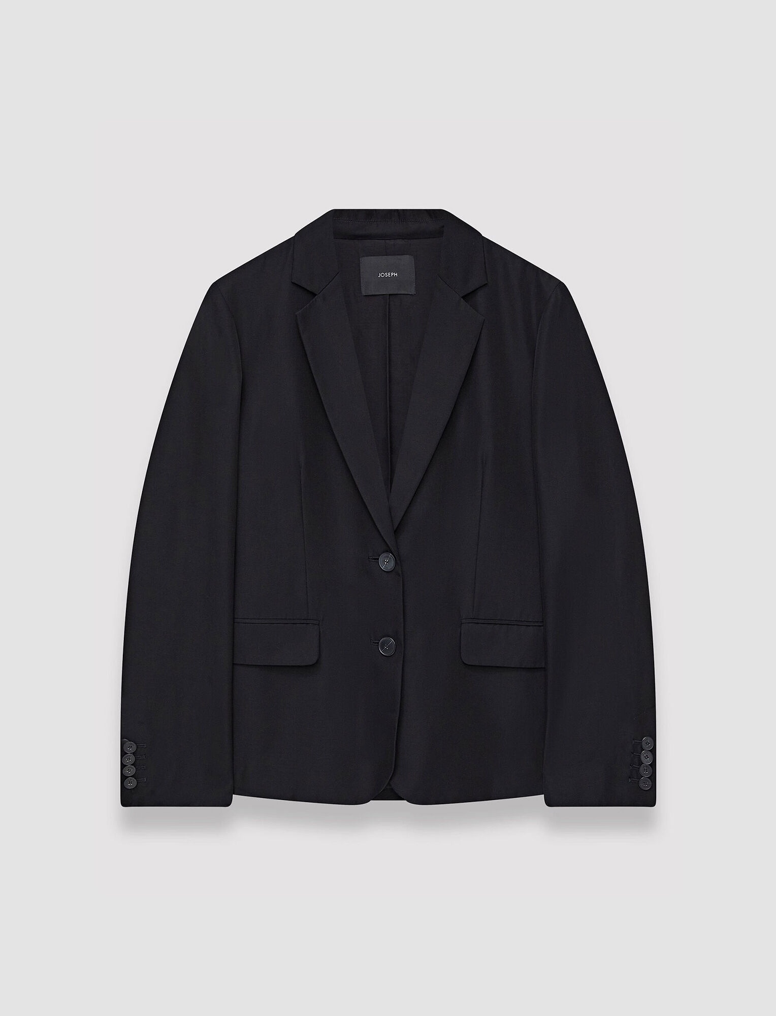 The Soft Cotton Silk Belmore Jacket is a single breasted, regular fit jacket, crafted from silk and cotton which offers a soft and fresh finish. This staple jacket is ideal for light layering. Rich in colour with a slight sheen, this elegant piece is fully lined, finished with two flap pockets and button detailing at the cuffs. - Regular fit - Single breasted - Lightweight - For best fit please check product measurements - Model wears French size 36, S - Product code: jf0068060010 SIZE ADVICE - Regular fit - Single breasted - Lightweight - For best fit please check product measurements - Model wears French size 36, S CARE & MATERIALS Discover the Care Guide, a guide to help you to care for your garments. - 52% Silk 48% Cotton - Do not wash - Do not bleach - Do not tumble dry - Iron low temperature setting - Dry clean very light with restriction