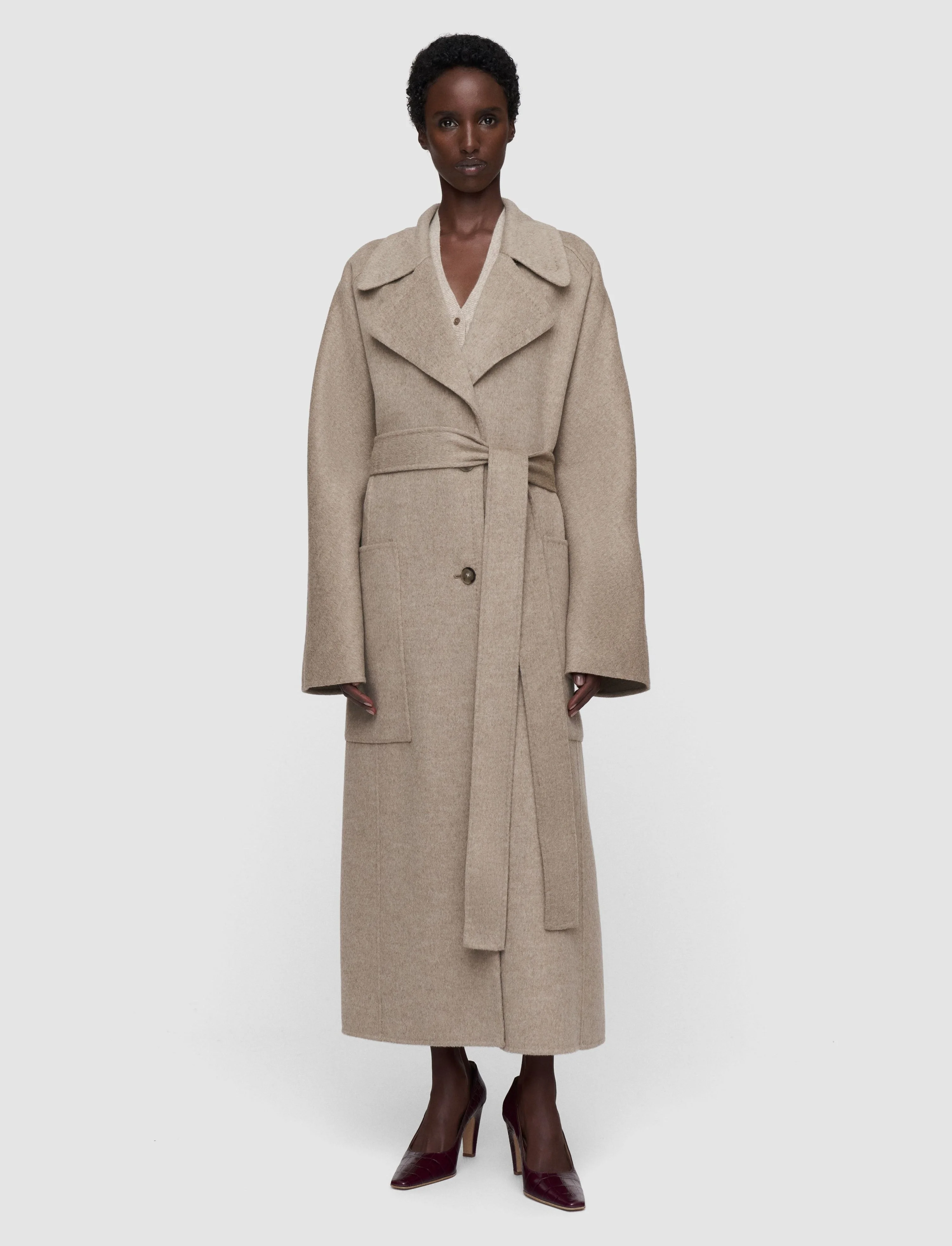 The Spencer Double Face Cashmere Coat is a single-breasted, relaxed fit coat, crafted from a luxurious blend of wool and cashmere. Designed with a wide collar, seamless shoulders, and sculpted sleeves for effortless structure and ease. Model wears size FR 40/UK 12/EU 38/US 8/DE 38/IT 44/JP 11 Details - Designed for a relaxed fit - Single-breasted - Long length - Wide collar with pick-stitching - Shaped sleeves - Removable belt - Front patch pockets - High back vent - Product code: jf0095921299 Care & Materials - 80% Wool 20% Cashmere - Do not wash - Do not bleach - Do not tumble dry - Iron low temperature setting - Dry clean