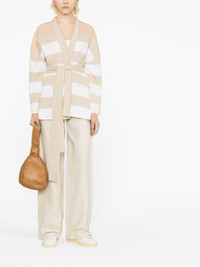 striped knitted cardigan This front-tie cardigan by JOSEPH is defined by its striped pattern and wrap-style silhouette. Its knitted construction is designed for a relaxed fit and features a contrasting peach-hued colour-block on the shoulder. Highlights - Beige/white - Horizontal stripe pattern - Knitted construction - V-neck - Wrap design - Front tie fastening - Long sleeves - Straight hem Imported Composition Cotton 45%, Wool 36%, Cashmere 9%, Polyamide 9%, Spandex/Elastane 1% SIZE & FIT Model measurements Height 5 ft 10 in(1.79 m) Bust/Chest 31.49 in(80 cm) Hips 35.03 in(89 cm) Waist 23.62 in(60 cm) FittingInformation Designed to be unstructured, offering a loose fit throughout The tie fastening gives an adaptable and personalised fit Made with a midweight knit, this piece offers some stretch This piece fits true to size – take your usual size