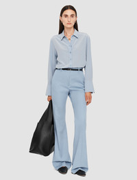 The Tafira Gabardine Stretch Trousers are a fit to flare trouser, crafted from JOSEPH's signature gabardine stretch fabric which has remarkable stretch recovery. Offering shape and comfort, these modern trousers have a smooth, heavy weight cotton hand feel. - Slim fit to flare - Mid-rise - Full-length - Side pockets - Product code: jp0017071463 - Faded Sky Blue SIZE ADVICE - Outer leg length 113cm - 116cm - Model wears size FR 36/UK 8/EU 34/US 4/DE 34/IT 40/JP 7 Discover the Trouser Guide and find your perfect fit CARE & MATERIALS - 53% Viscose 42% Cotton 5% Elastane - Do not wash - Do not bleach - Do not tumble dry - Iron low temperature setting - Dry clean