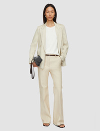 The Tafira Leather Stretch Trousers are a full-length, fit to flare trouser. These signature JOSEPH trousers are crafted from supple leather that's backed into cotton jersey, making them very comfortable to wear. Model wears size FR 36/UK 8/EU 34/US 4/DE 34/IT 40/JP 7 Details - Fit to flare - Mid-rise - Full-length - Side pockets - Product code: jf0089871267 - Quail Beige Care & Materials - 100% Leather - Dry clean leather & fur specialist only