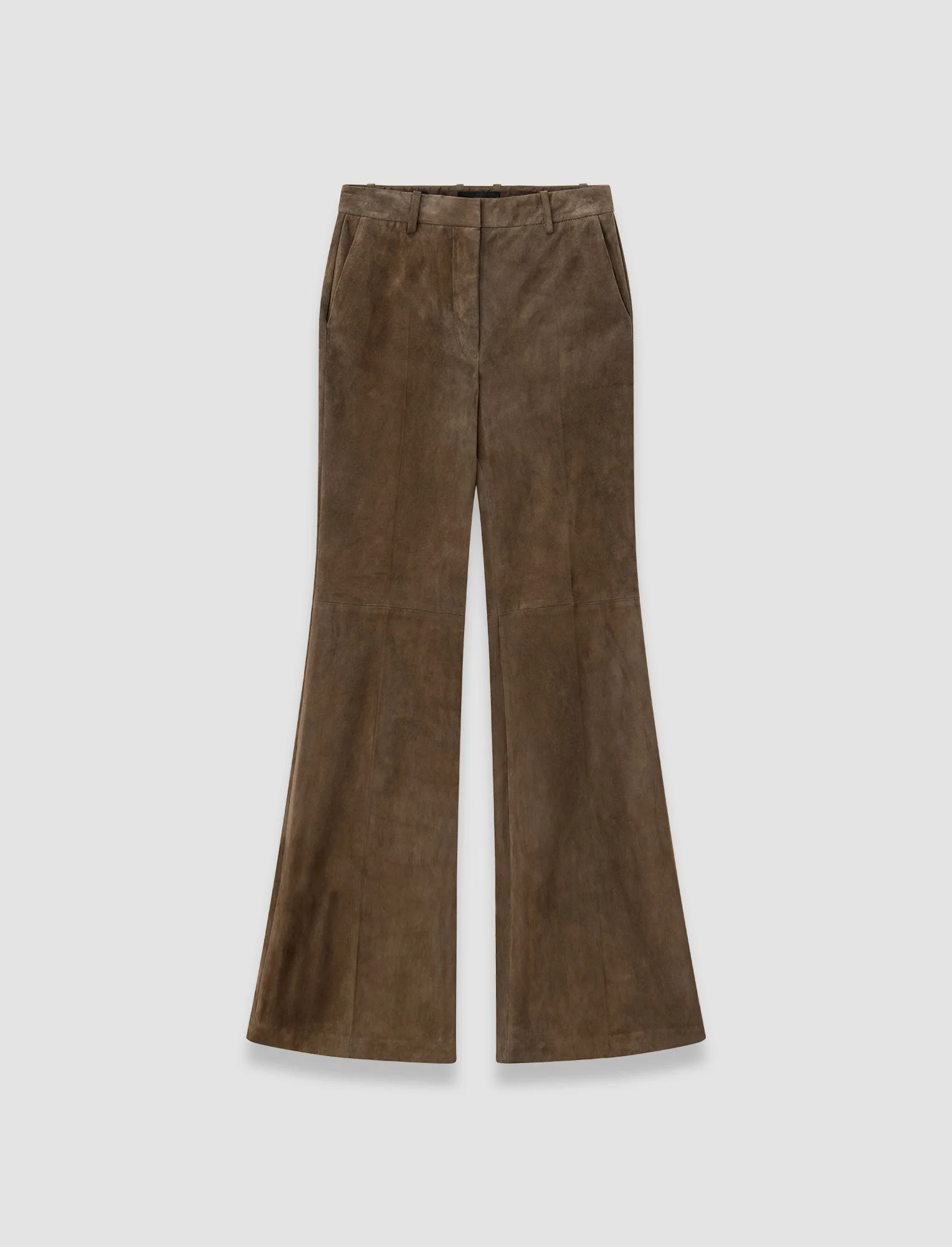 The Tafira Suede Stretch Trousers are a fit to flare trouser, crafted from very soft leather for comfortable wear. A JOSEPH signature trouser style reimagined in luxurious suede, defined by its elegant full-length flared cut, designed to elongate the leg line. Model wears size FR 36/UK 8/EU 34/US 4/DE 34/IT 40/JP 7 Details - Fit to flare - Mid-rise - Full-length - Side pockets - Product code: jf0095362202 Care & Materials - 100% Lambskin - Do not wash - Do not bleach - Do not iron - Do not tumble dry - Do not dry clean - Cleaning by a leather specialist only