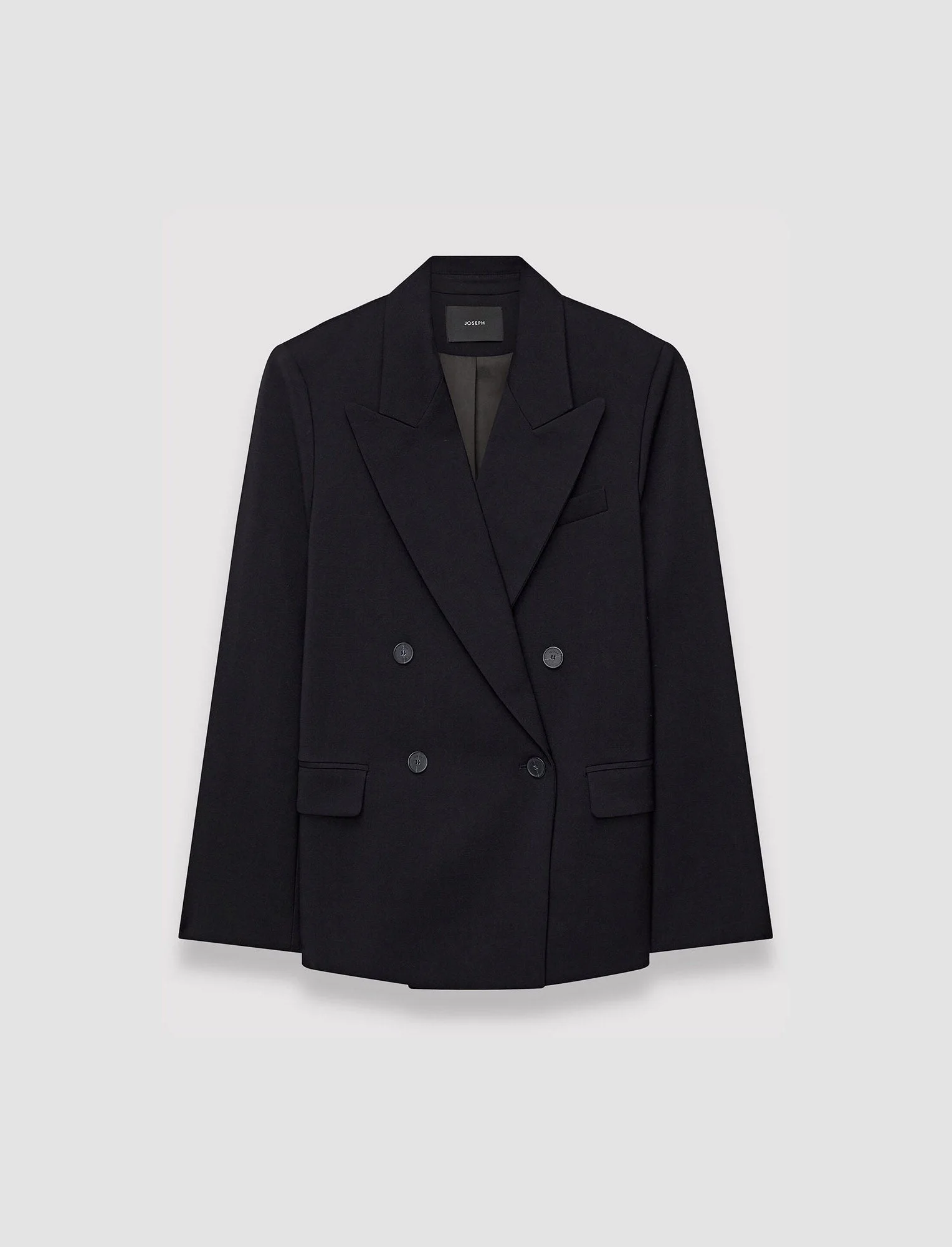 Part of the permanent Foundations Collection, the Tailoring Wool Stretch Jaden Jacket is a regular fit, double-breasted jacket, crafted from JOSEPH's signature tailoring wool fabric. This classic style is lined with an inside chest pocket and finished with shoulder padding. - Designed for a regular fit - Double-breasted - Front flap pockets - Chest pocket outside and inside - Product code: jp0014080010 SIZE ADVICE - Model wears French size 36 CARE & MATERIALS Discover the Care Guide, a guide to help you to care for your garments. - 98% Virgin Wool 2% Elastane - Do not wash - Do not bleach - Do not tumble dry - Iron low temperature setting - Dry clean normal