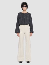 The Tailoring Wool Stretch Morissey Trousers are a mid-rise, regular fit trouser, crafted from JOSEPH's signature tailoring wool fabric. These trousers are fluid with a gradual flare and are finished with central pressed creases to elongate the silhouette. - Designed for a regular fit - Gradual flare - Mid-rise - Full-length - Side pockets - Product code: jp0016371274 SIZE ADVICE - Regular outer leg length 113cm - 116cm - Shorter outer leg length 102cm - 105cm - Model wears French size 36 Discover the Trouser Guide and find your perfect fit CARE & MATERIALS Discover the Care Guide, a guide to help you to care for your garments. - 98% Wool 2% Elastane - Do not wash - Do not bleach - Do not tumble dry - Iron low temperature setting - Dry clean normal