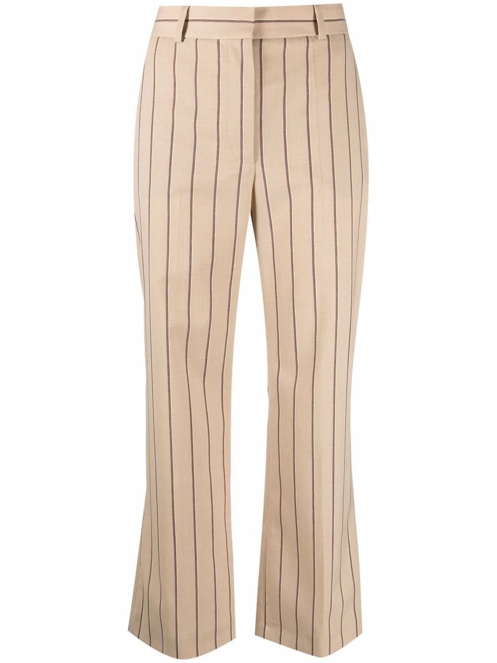 Talia stripe-print tailored trousers chai/sulphur stretch-virgin wool stripe print concealed front fastening cropped leg two side slit pockets two rear welt pockets Imported Composition Outer: Virgin Wool 98%, Elastane 2% Lining: Viscose 100% SIZE & FIT Model measurements Height 5 ft 10 in(1.78 m) Bust/Chest 33.07 in(84 cm) Hips 35.82 in(91 cm) Waist 26.96 in(68.5 cm) FittingInformation This piece fits true to size. We recommend you get your regular size Designed to be fitted at the waist and through the thigh, loose from the knee Made with a mid-weight fabric