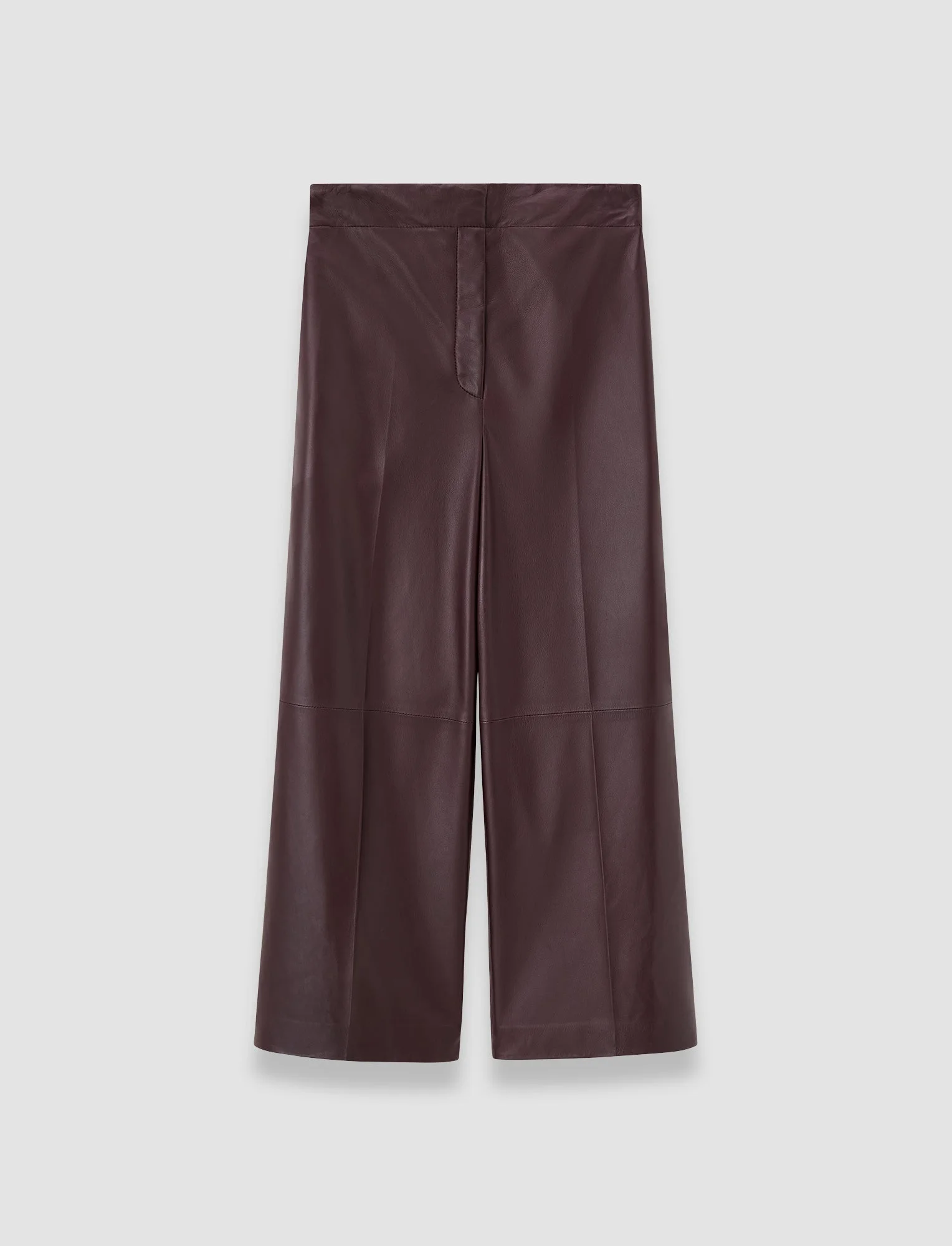 The Thurlow Nappa Leather Trousers are a cropped, wide leg trouser, crafted from supple nappa leather for exceptional comfort and softness. These trousers offer a modern, culotte look. The versatile silhouette can effortlessly be dressed up or down. Model wears size FR 36/UK 8/EU 34/US 4/DE 34/IT 40/JP 7 Details - Wide leg - Cropped - Side pockets - Elasticated waistband at the back - Half lined - Product code: jf0094801602 Care & Materials - 100% Lambskin - Do not wash - Do not bleach - Do not iron - Do not tumble dry - Do not dry clean - Cleaning by a leather specialist only