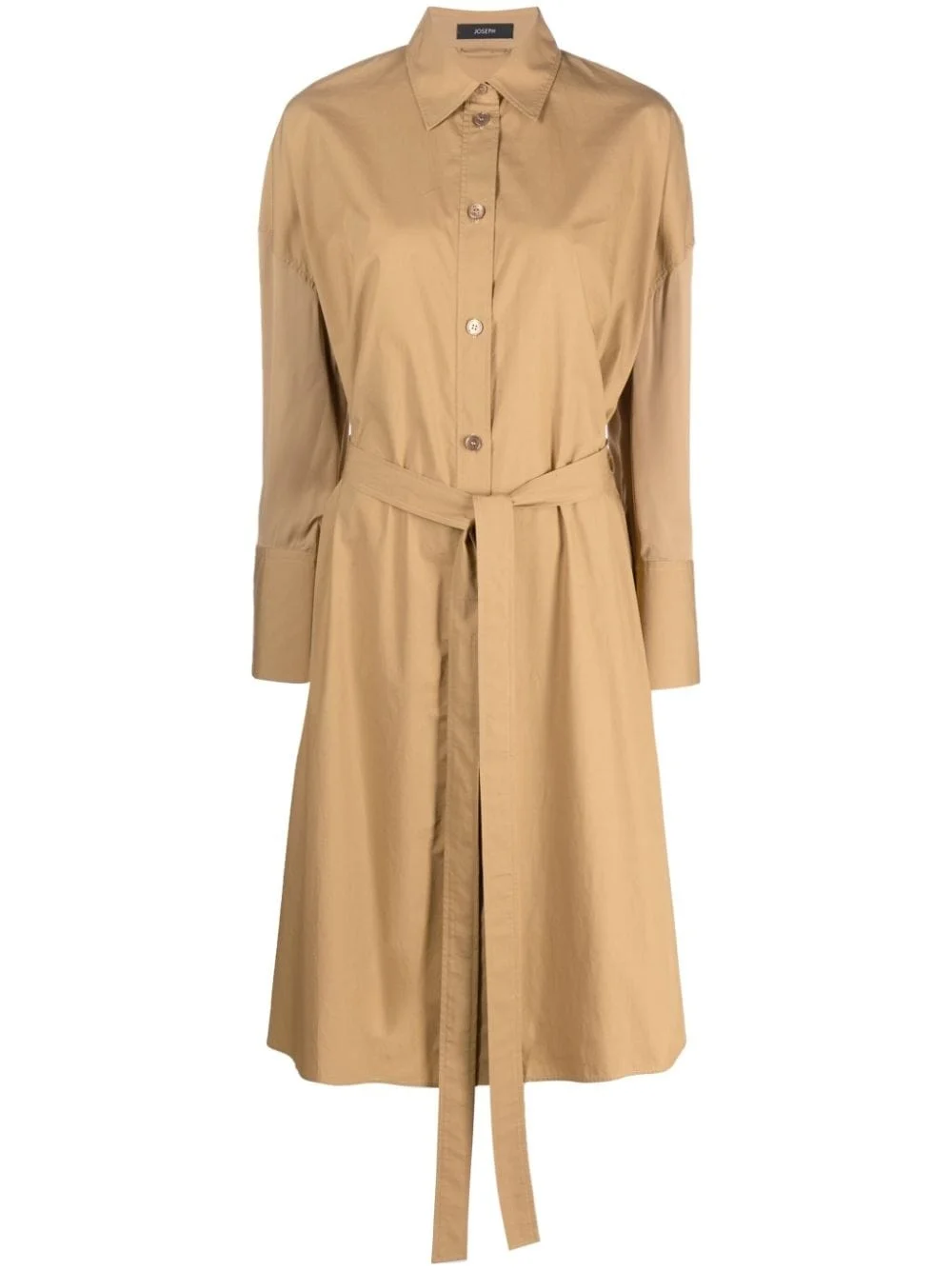 tied-waist cotton shirtdress Highlights - Camel brown - Cotton - Tied waist - Belt loops - Classic collar - Front button fastening - Long sleeves - Mid-length Imported Composition Cotton 100%, Viscose 100% SIZE & FIT Model measurements Height 5 ft 9 in(1.75 m) Bust/Chest 33.07 in(84 cm) Hips 35.03 in(89 cm) Waist 24.01 in(61 cm) FittingInformation Designed to be unstructured, offering a loose fit throughout The adjustable tie waist gives a more adaptable and personalised fit Made from a midweight non-stretch fabric This piece fits true to size – take your usual size