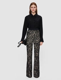 The Tokyo Patchwork Lace Trousers are a fit to flare trouser, crafted from a viscose blend. Precious, modern-look lace is reimagined in a deconstructed patchwork pattern. The lace is designed by JOSEPH and developed alongside a specialist Italian mill. These eveningwear trousers are fluid and are finished with a flat front for a clean silhouette. - Fit to flare - High-rise - Full-length - Invisible side zip - Side pockets - Product code: jp0016961104 - Comet Combo Black SIZE ADVICE - Outer leg length 113cm - 116cm - Model wears size FR 36/UK 8/EU 34/US 4/DE 34/IT 40/JP 7 CARE & MATERIALS - 94% Polyamide 6% Viscose - Do not wash - Do not bleach - Do not tumble dry - Iron low temperature setting - Dry clean