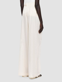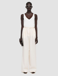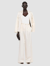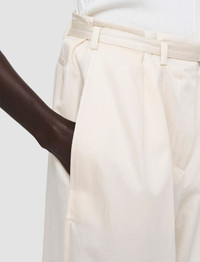The Light Cotton Sateen Tunis Trousers are a wide leg trouser, crafted from a special, fine cotton which is renowned for its durability. These trousers feature a gathered waistband with a coordinating belt and front pleats. These relaxed trousers are lightweight with a silky feel and appearance. Model wears size FR 38/UK 10/EU 36/US 6/DE 36/IT 42/JP 9 Details - We are recommending a size down - Wide leg - Mid-rise - Full-length - Gathered waistband with belt - Side pockets - Product code: jp0016051154 Care & Materials - 100% Cotton - Do not wash - Do not bleach - Do not tumble dry - Iron low temperature setting - Dry clean mild