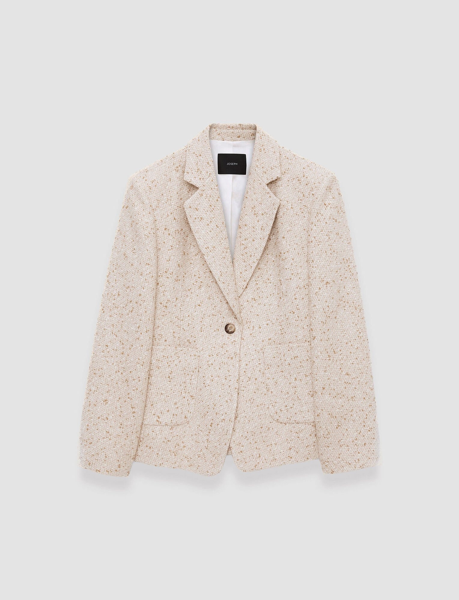 The Glenview Tweed Jacket is a regular fit, single-breasted jacket, crafted from a blend of viscose and cotton. Viscose adds lightness and fludity to this seasonal tweed. This piece is lined with soft shoulder padding and features darts at the waistline for a fitted look and finish. - Designed for a regular fit - Single-breasted - Darts at waistline - Front patch pockets - Four-button cuffs - Product code: jp0016101113 SIZE ADVICE - Model wears French size 36 CARE & MATERIALS - 57% Viscose 30% Cotton 4% Polyamide 9% Acrylic - Do not wash - Do not bleach - Do not tumble dry - Iron low temperature setting - Dry clean very light with restriction