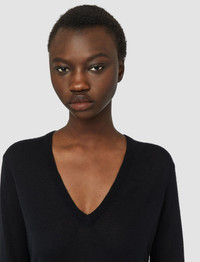 Part of the permanent Foundations Collection, the Cashair V Neck Jumper is a relaxed fit, lightweight knit jumper, crafted from 100% cashmere. This JOSEPH signature knit is soft, delicate and semi-sheer, finished with a ribbed neckline, hem and cuffs. - 100% cashmere - Designed for a relaxed fit - Semi-sheer - Lightweight knit - Product code: jf0085060010 - Black SIZE ADVICE - Model wears size S CARE & MATERIALS Discover the Care Guide, a guide to help you to care for your garments. - 100% Cashmere - Machine wash, cycle hand wash, very gentle spin - Do not bleach - Do not tumble dry - Iron low temperature setting - Dry clean mild - Use a wool detergent - Wash inside out with similar colours - Put in a laundry bag - Iron inside out - Dry flat