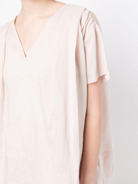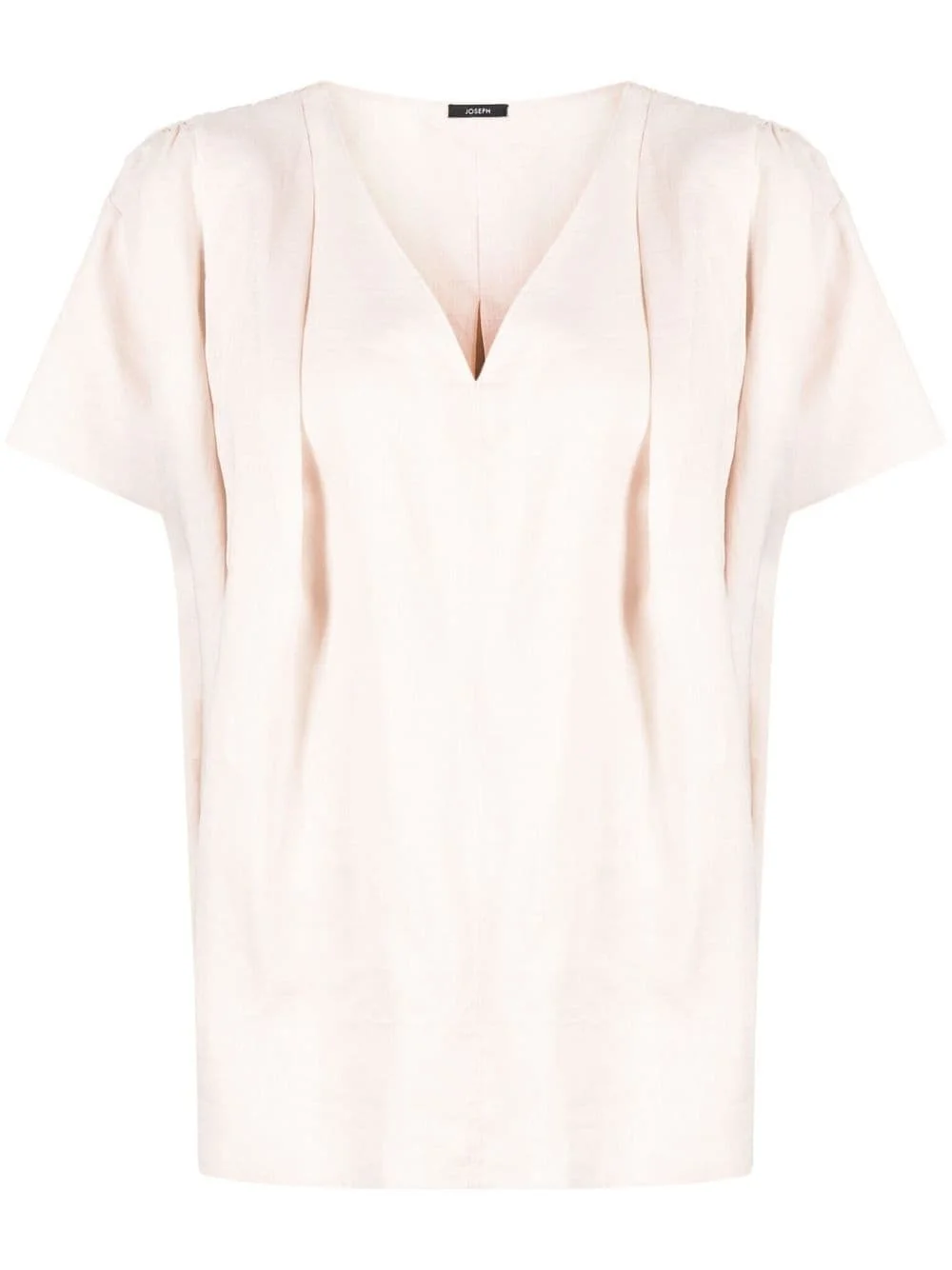V-neck short-sleeved top Highlights - Blush beige - Cotton - Ramie - V-neck - Short sleeves - Side slits - Straight hem Imported Composition Outer: Ramie 100% Lining: Cotton 100% SIZE & FIT Model measurements Height 5 ft 9 in(1.76 m) Bust/Chest 29.92 in(76 cm) Hips 35.82 in(91 cm) Waist 25.98 in(66 cm) FittingInformation Designed to be unstructured, offering a loose fit throughout Made from a lightweight non-stretch fabric This piece fits true to size – take your usual size