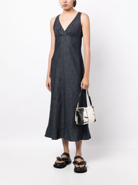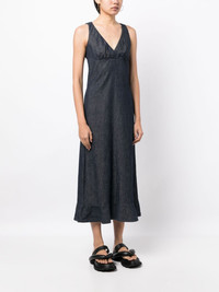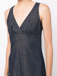 V-neck sleeveless cotton dress Highlights - Midnight blue - Cotton - Pleat detailing - V-neck - Sleeveless - Concealed rear zip fastening - Peplum hem - Mid-length Made in Italy Composition Body: Cotton 100% Lining: Cotton 100% SIZE & FIT Model measurements Height 5 ft 10 in(1.77 m) Bust/Chest 31.49 in(80 cm) Hips 35.43 in(90 cm) Waist 25.19 in(64 cm) FittingInformation Designed for a slim fit that sits just away from the body offering a close yet comfortable fit Sturdy and hard-wearing, this denim piece offers no stretch This piece fits true to size – take your usual size