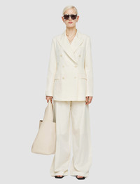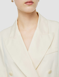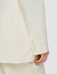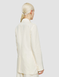 The Valery Soft Cotton Silk Jacket is a regular fit, double-breasted jacket. Crafted from silk and cotton, the fabric has a natural sheen and a silky-smooth hand feel. This elegant six-button blazer is lightweight, ideal for an off-duty, relaxed look. - Unstructured, soft tailoring - Double-breasted - Welt chest pocket - Side flap pockets - Lightweight - Product code: jf0091260045 - Ivory SIZE ADVICE - Model wears size FR 36/UK 8/EU 34/US 4/DE 34/IT 40/JP 7 CARE & MATERIALS Discover the Care Guide, a guide to help you to care for your garments. - 52% Silk 48% Cotton - Do not wash - Do not bleach - Do not tumble dry - Iron low temperature setting - Dry clean