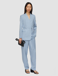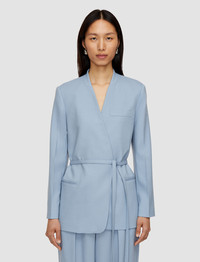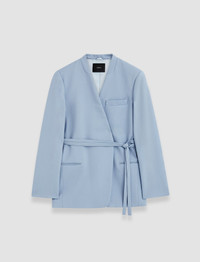 The Victor Tailoring Wool Crepe Jacket is a collarless, wrap jacket, crafted from virgin wool sable. This luxurious tailoring fabric is fluid and crisp. Finished with welt pockets and shoulder padding, delivering a clean, elegant look. - Designed for a regular fit - Belted wrap style - Buttonless - Collarless - Welt pockets - Lined - Shoulder padding - Product code: jp0017121463 - Faded Sky Blue SIZE ADVICE - Model wears size FR 36/UK 8/EU 34/US 4/DE 34/IT 40/JP 7 CARE & MATERIALS Discover the Care Guide, a guide to help you to care for your garments. - 99% Virgin wool 1% Elastane - Do not wash - Do not bleach - Do not tumble dry - Iron low temperature setting - Dry clean