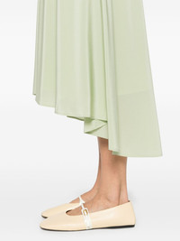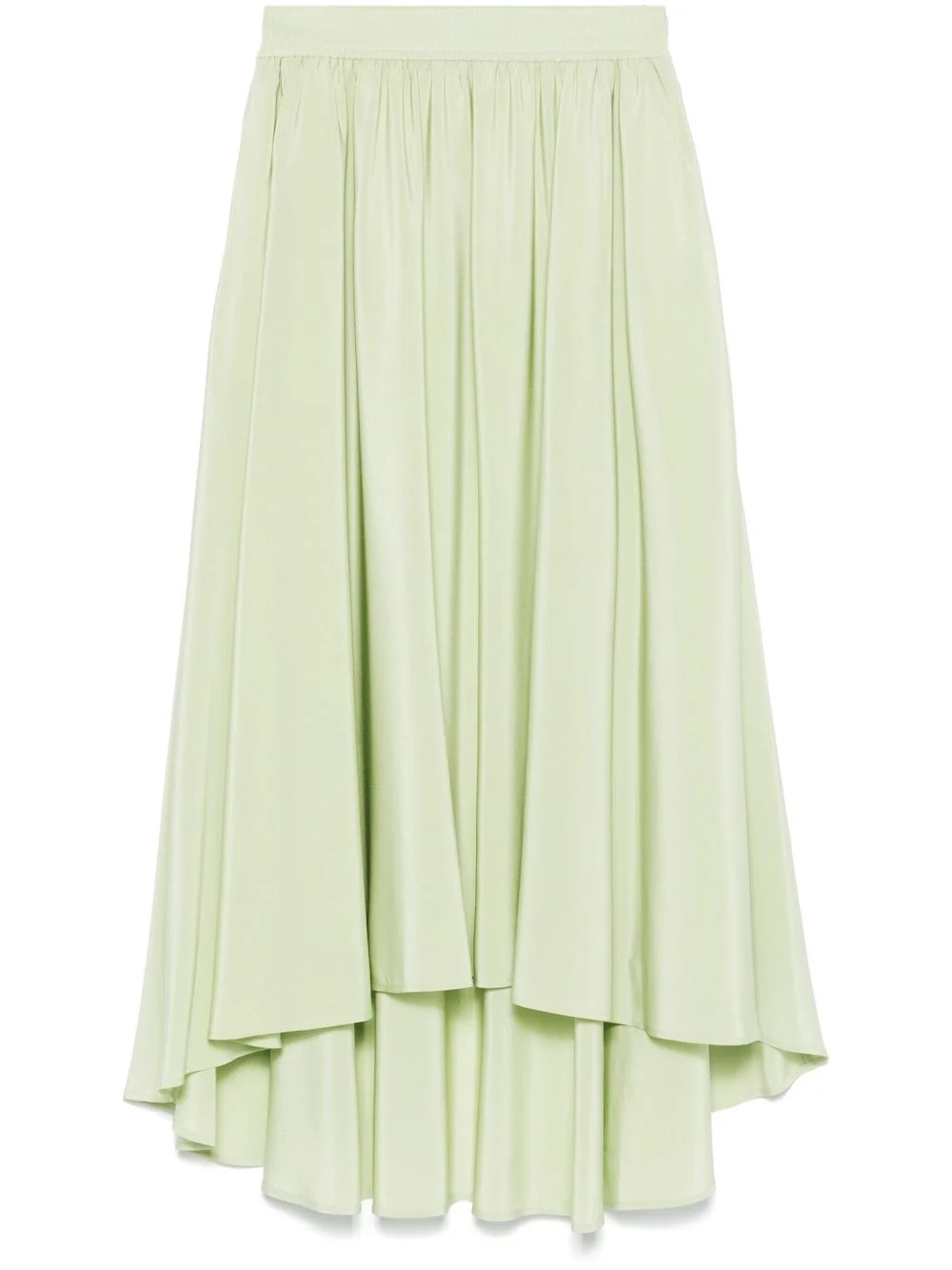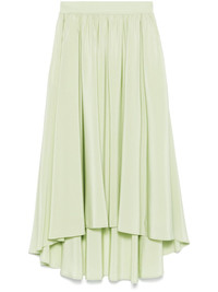 Violet maxi skirt Highlights - Sage green - Elasticated waistband - Two side slit pockets - High-low hem Imported Composition Outer: Silk 100%, Viscose 70%, Polyamide 28%, Spandex/Elastane 21% Lining: Viscose 71%, Silk 29% SIZE & FIT Model measurements Height 5 ft 11 in(1.8 m) Bust/Chest 33.07 in(84 cm) Hips 37.4 in(95 cm) Waist 25.19 in(64 cm) FittingInformation Designed with an asymmetric hem, this skirt is intended to be worn just below the waist The elasticated waist allows for a comfortable fit Made from a midweight fabric Washing instructions Dry Clean Only