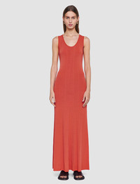 The Viscose Rib Knit Dress is a fit to flare, maxi dress, crafted from a viscose blend. This easy-wearing dress comfortably fits to your shape. The close-knit fabric delivers a smooth hand feel and the ideal weight and drape. Model wears size S Details - Fit to flare - Maxi dress - Racer back - Product code: jf0091701812 Care & Materials - 80% Viscose, 20% Polyamide - Machine wash, cycle Hand wash, very gentle spin - Do not bleach - Do not tumble dry - Iron low temperature setting - Dry clean - Use a mild detergent - Put in a laundry bag - Wash inside out with similar colours - Dry flat - Iron inside out