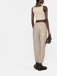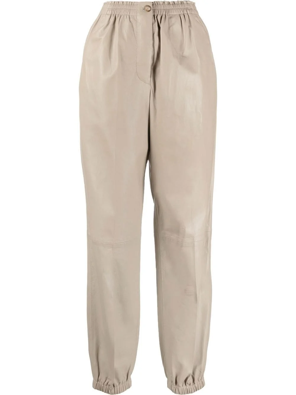 Viscount leather trousers In a supple lambskin construction, the Viscount leather trousers by JOSEPH feature a relaxed silhouette with elasticated cuffs, for a contemporary yet minimal aesthetic. Imported Composition Outer: Lamb Skin 100% Lining: Viscose 100% SIZE & FIT Model measurements Height 5 ft 10 in(1.79 m) Bust/Chest 31.1 in(79 cm) Hips 35.03 in(89 cm) Waist 24.01 in(61 cm) FittingInformation This piece fits true to size. We recommend you get your regular size Designed to be fitted at the waist and hips, loose over the leg Made with a mid-weight non-stretch fabric